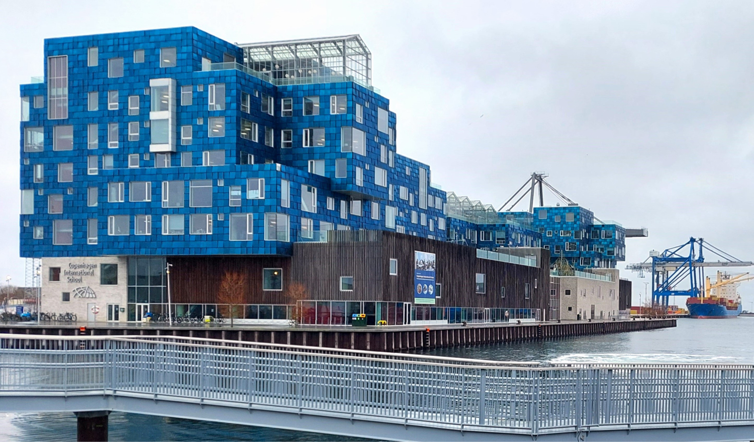 In addition to its historical architecture, Copenhagen is also renowned for its commitment to sustainability and architectural innovation. The city is often seen as a model for sustainable urban design. The International School of Copenhagen stands as a striking example, with its building housing approximately 1,200 elementary and secondary students. Notably, it is covered with nearly 12,000 photovoltaic panels, providing over half of the school's electricity needs. These panels, arranged at varying angles, create a play of light reflections, lending dynamic facades resembling fish scales.